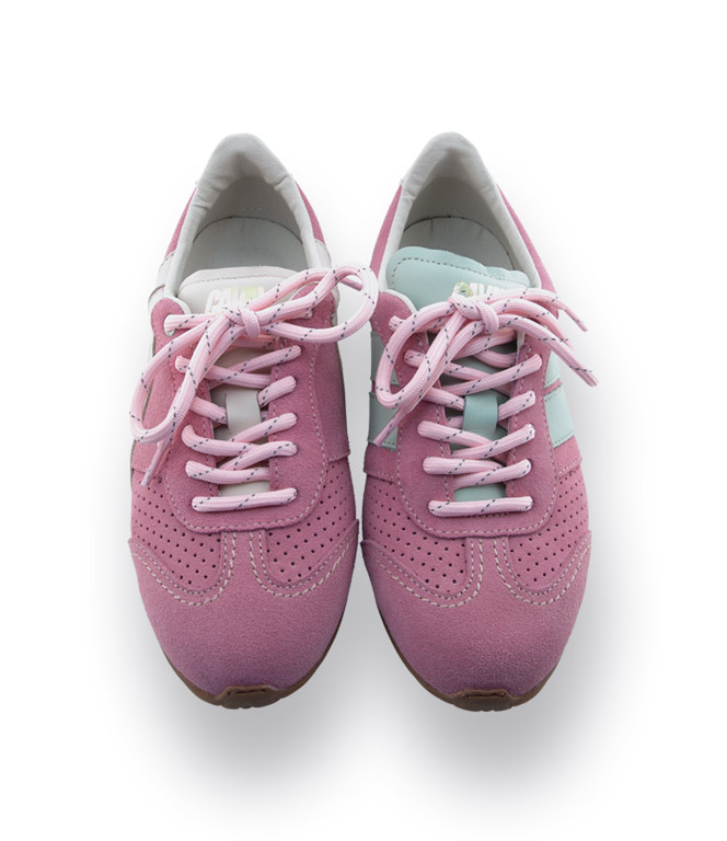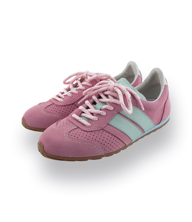 Der Caval Sneaker in Rosa, Weiß und Mint ist ein verspielter Blickfang – perfekt für alle, die sanfte Farben und außergewöhnliches Design lieben. Typisch Caval zeigt sich das asymmetrische Markenkonzept: Zunge, Fersenabschluss und Streifen sind rechts und links bewusst konträr gestaltet. Ein Detail, das sofort ins Auge fällt.