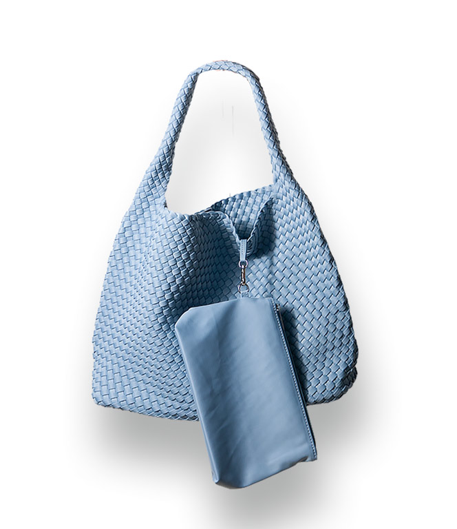 Die En Avant Tasche Venezia in Hellblau überzeugt durch ihr modernes Design und ihre Vielseitigkeit. Das geflochtene Neopren-Material ist angenehm griffig, robust und lässt sich unkompliziert bei 30 Grad in der Waschmaschine reinigen. Dank des geflochtenen langen Henkel kann die Tasche bequem über der Schulter getragen werden. Der Magnetverschluss ermöglicht ein schnelles Öffnen und Schließen. Eine kleine, an einem Karabiner befestigte Innentasche sorgt für sicheren Stauraum für wichtige Kleinigkeiten. Mit den großzügigen Maßen von 32 x 45 x 16 cm bietet die Venezia ausreichend Platz für alles, was Sie im Alltag benötigen.