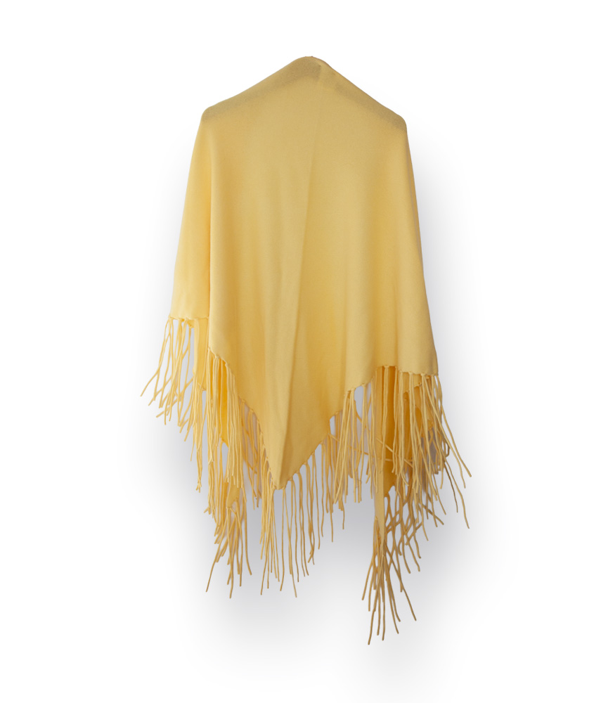 Dreieckstuch - Poncho in gelb von Herzen's Angelegenheit mit langen Fransen