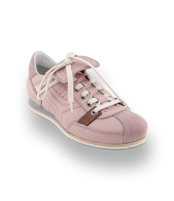 Der Kamo Gutsu Tifo 015 besticht durch seine Kombination aus sportivem Erbe und moderner Eleganz. Das superweiche Glattleder in zartem Rosa ist hochwertig abgesteppt, was dem Sneaker eine luxuriöse Struktur verleiht. Das modische Highlight: Die umgeklappte Lederlasche oberhalb der Schnürung sorgt für einen individuellen Look, der handwerkliche Raffinesse und Trendbewusstsein perfekt vereint.