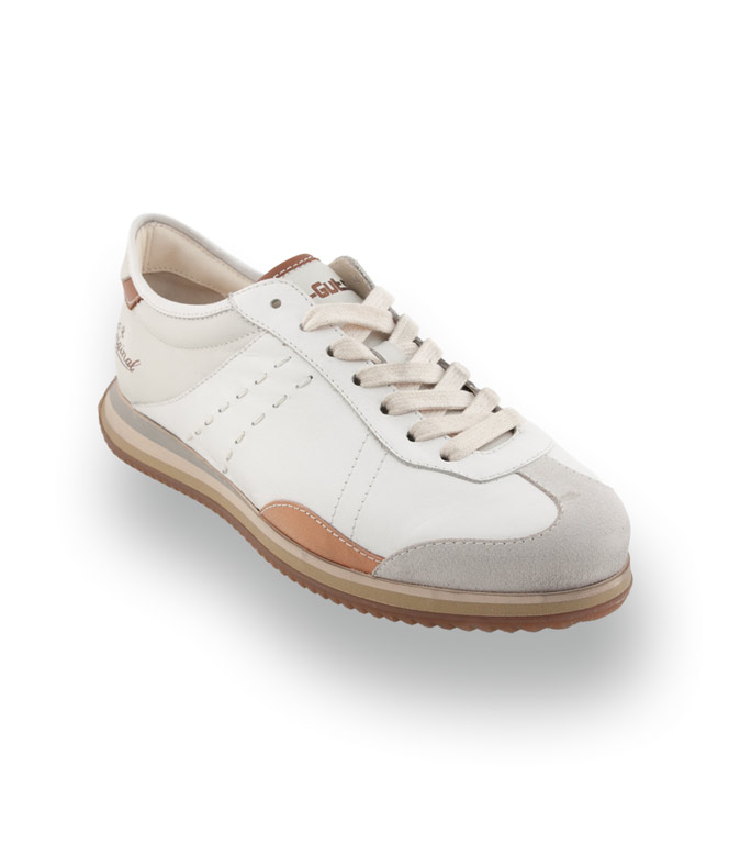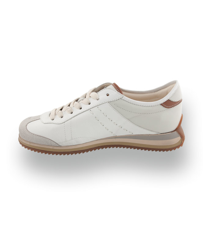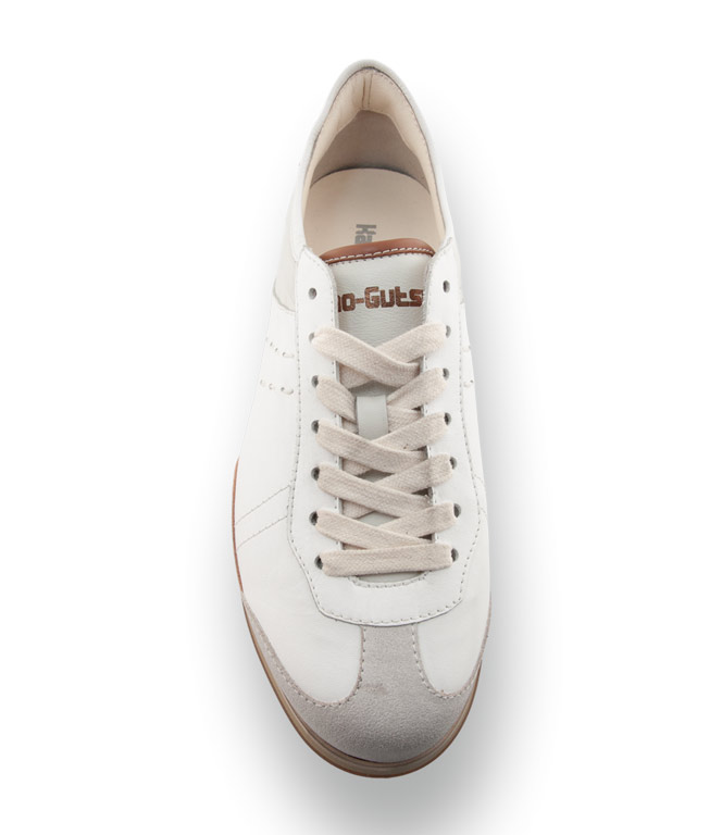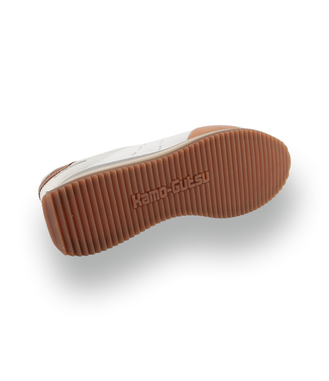 Der Kamo Gutsu Giro 006 besticht durch eine besonders harmonische und edle Farbkombination aus Weiß, Offwhite und grauem Veloursleder. Das Brand aus den italienischen Marken beweist hier erneut ihr Gespür für Details: Dezente braune Akzente verleihen dem Schuh eine klassische Note, während der markante, dreifarbige Keilboden für eine moderne und dynamische Silhouette sorgt.