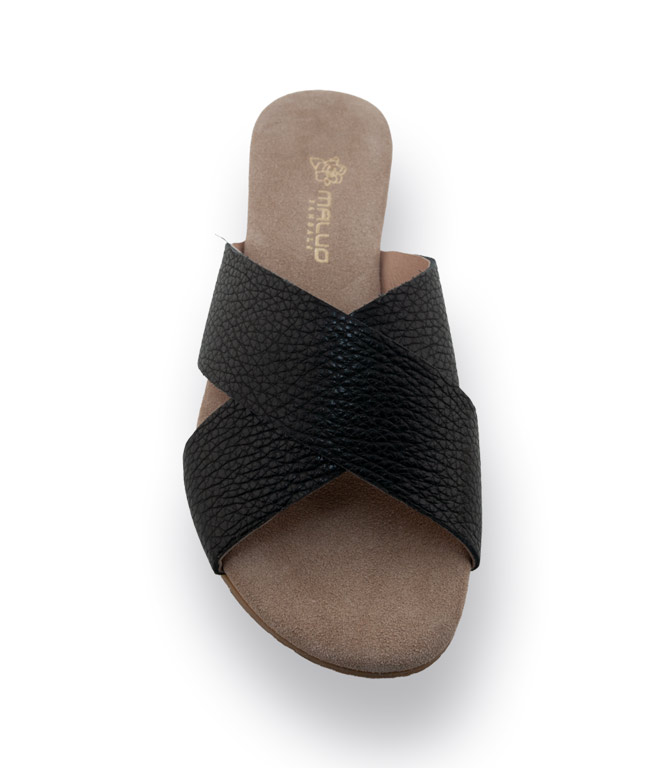 Maluo Pantolette in schwarz mit Kreuzbandage