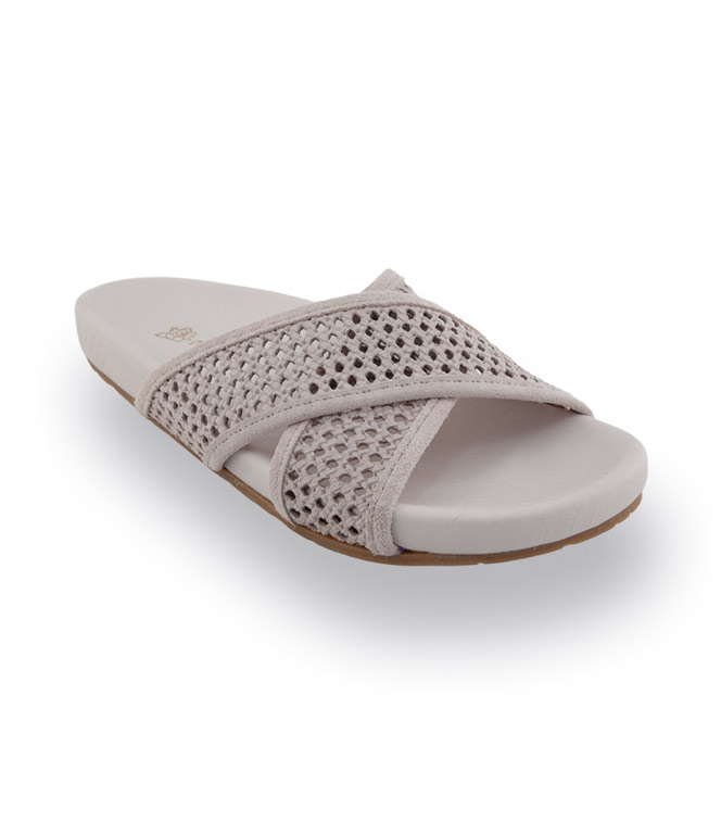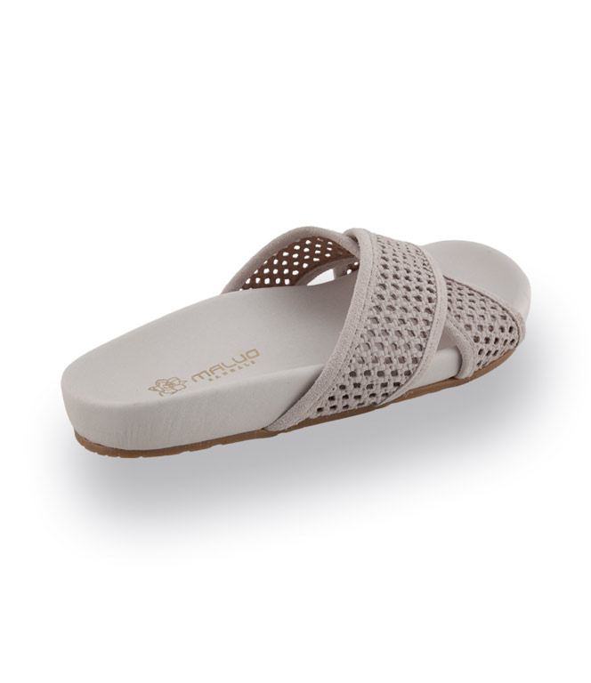 Die Maluo Fußbettpantolette in hellem Beigeton ist der Inbegriff von lässigem, zurückhaltendem Luxus. Das weiche, geflochtene Veloursleder sorgt für eine besonders angenehme Haptik und eine natürliche, stilvolle Optik. Die breite Kreuzbandage umschließt den Fuß sicher und bietet eine komfortable Passform, ohne einzuengen. Innen ist die Pantolette vollständig mit Leder gefüttert, was ein atmungsaktives, angenehmes Tragegefühl auch an warmen Tagen unterstützt.
