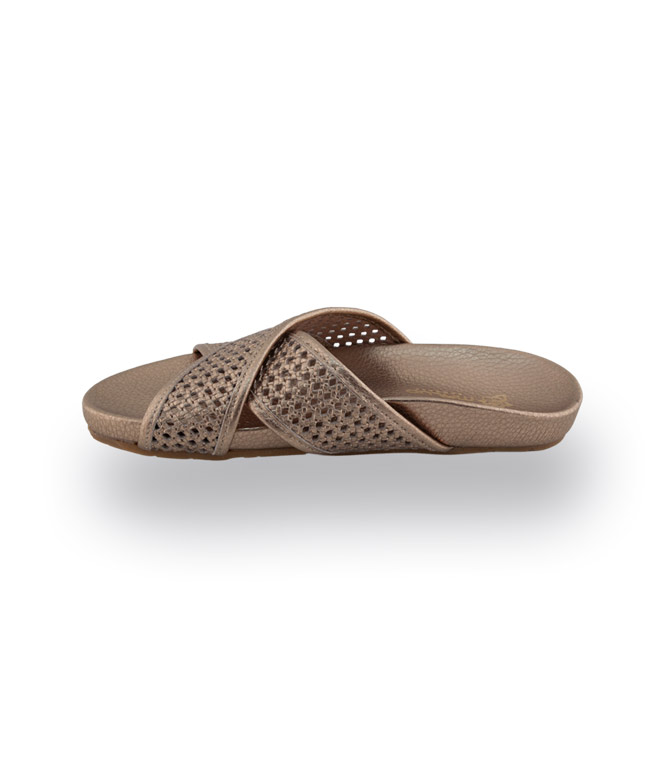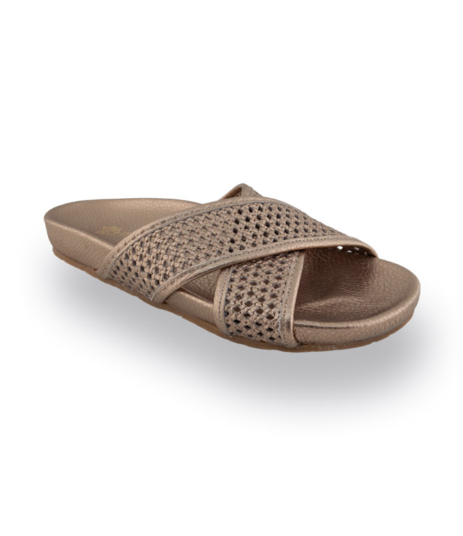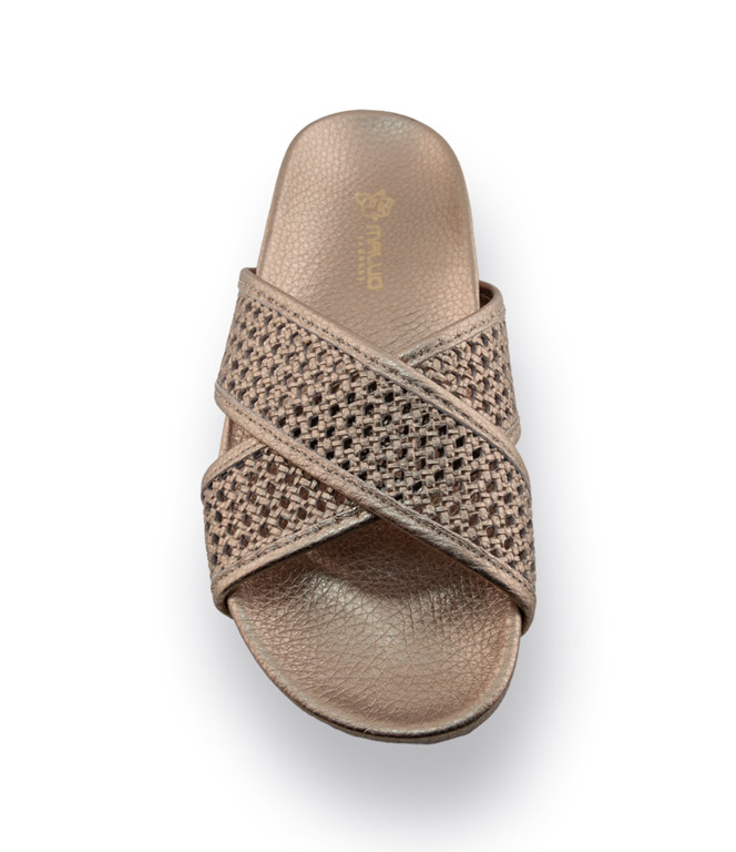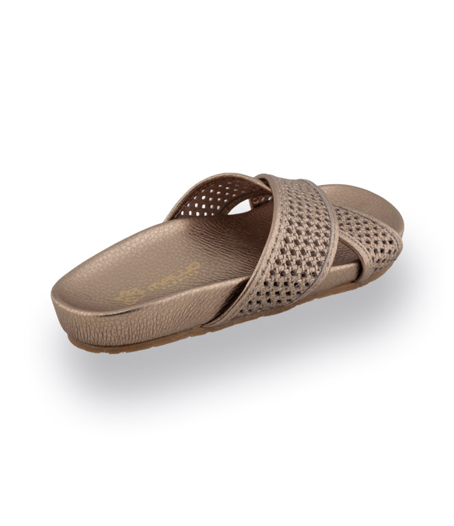 Maluo Fußbettpantolette in goldmetallic mit Kreuzbandage