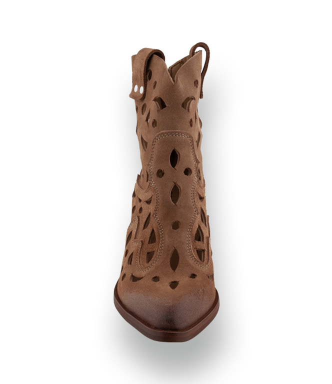Mimmu Western-Boots in Braun – Veloursleder mit Cutouts & geschrägtem Absatz