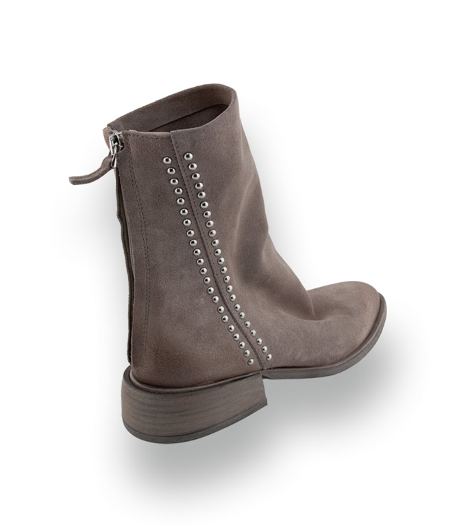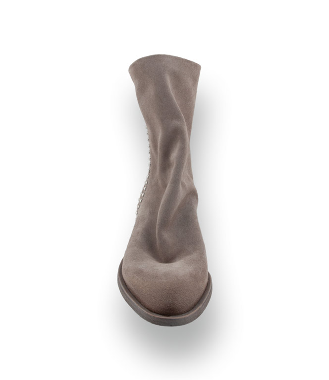 Italienischer Chic mit rockigem Akzent. Diese Stiefelette von Mimmu vereint pure Lässigkeit mit liebevollen Details. Gefertigt aus besonders weichem Veloursleder in einem eleganten Hellgrau, besticht der Boot durch seinen entspannten Look und die hochwertige Verarbeitung. Ein modisches Highlight sind die seitlich angebrachten Nieten, die dem Schuh eine dezente Rock-Attitüde verleihen, ohne seine feminine Weichheit zu verlieren.