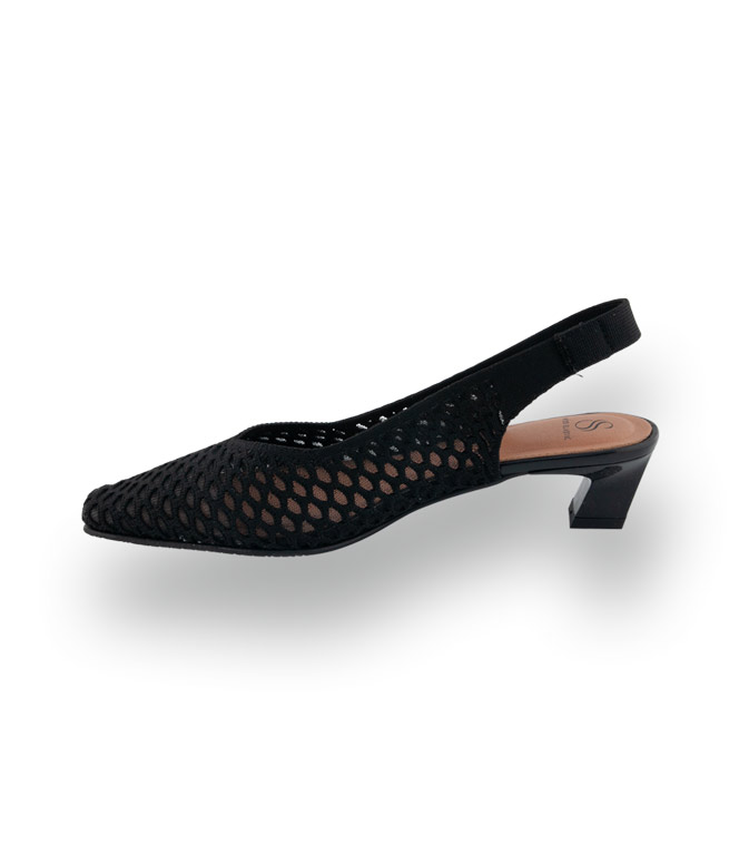 Sommerliche Eleganz trifft auf pure Entspannung! Der Miss Elastic Sling in klassischem Schwarz besticht durch sein außergewöhnliches Design in gehäkelter Mesh-Optik. Das innovative Stretchmaterial ist mit feinen Löchern gearbeitet, was nicht nur optisch ein Highlight ist, sondern auch für eine optimale Belüftung Ihres Fußes sorgt. Da das Material hochflexibel ist, passt es sich jeder Fußform individuell an und bietet insbesondere bei einem Hallux Valgus oder druckempfindlichen Stellen eine wohltuende Entlastung.