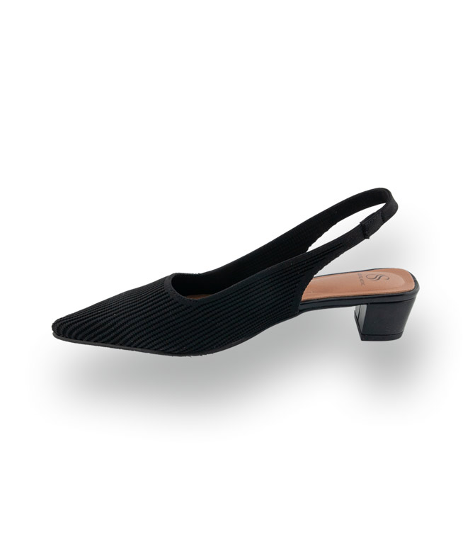 Eleganz ohne Reue! Der Miss Elastic Sling in tiefem Schwarz ist der ideale Schuh für alle, die keine Kompromisse zwischen Schick und Bequemlichkeit eingehen möchten. Gefertigt aus einem hochflexiblen Stretchmaterial, passt sich dieser Sling individuell Ihrer Fußform an. Besonders bei einem Hallux Valgus oder druckempfindlichen Füßen bietet er spürbare Erleichterung, da das Material dort nachgibt, wo herkömmliche Schuhe oft einengen.