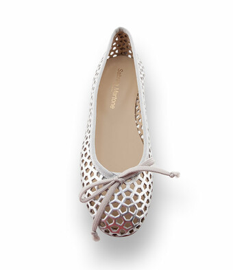 Metallics sind begehrenswerte Begleiter die sich optimal integrieren lassen. Silberfarbenes Leder und hübsche Cutouts sorgen für Leichtigkeit. Ballerinas von Sabrina Martone überzeugen durch Qualität und Verarbeitung. Lederfutter und eine Lederlaufsohle perfektionieren den Tragekomfort, besonders an heißen Tagen.