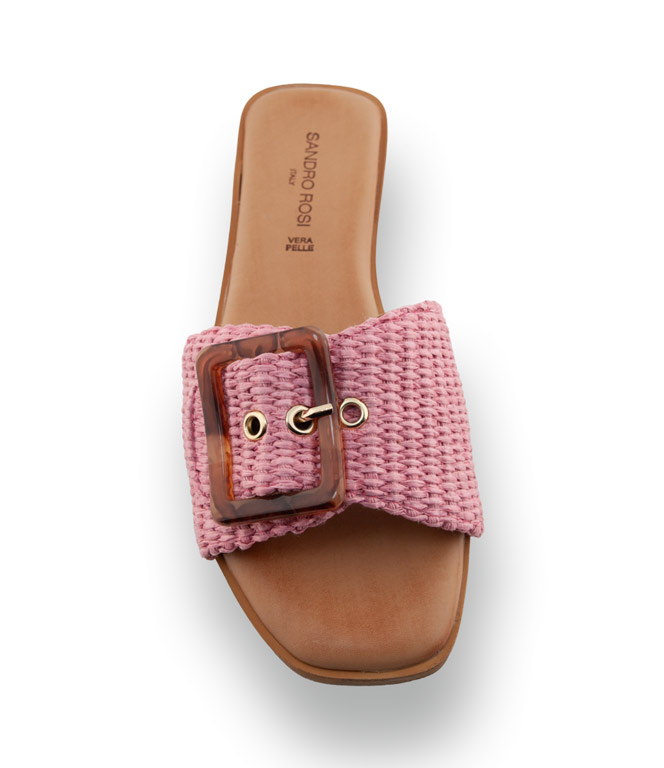 Sandro Rosi - Modische Bast-Pantolette mit großer Schnalle in Rosa