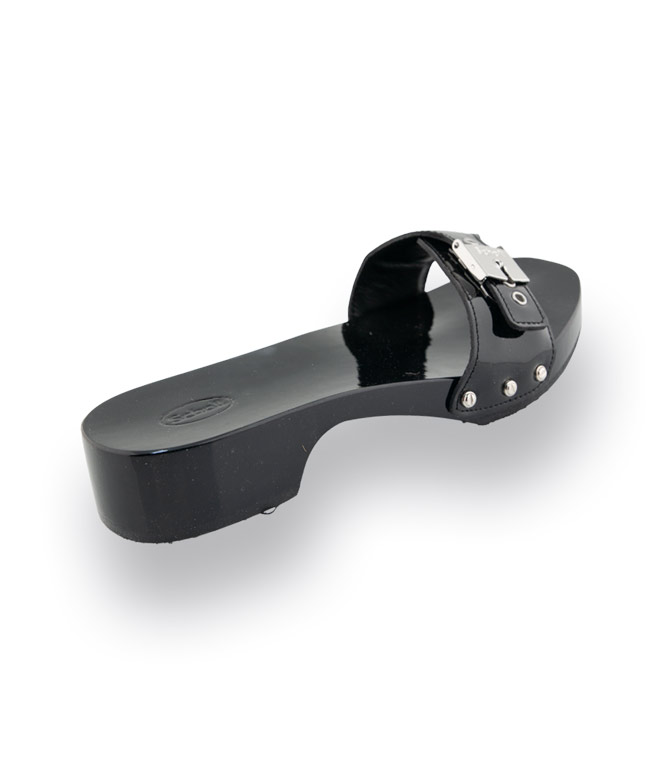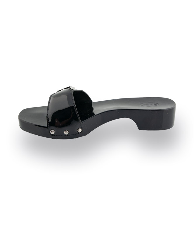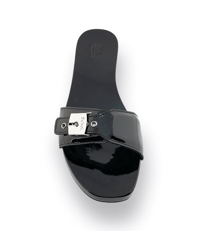 Scholl Pantolette Holzclogs Modell Pescura in schwarz Lackleder