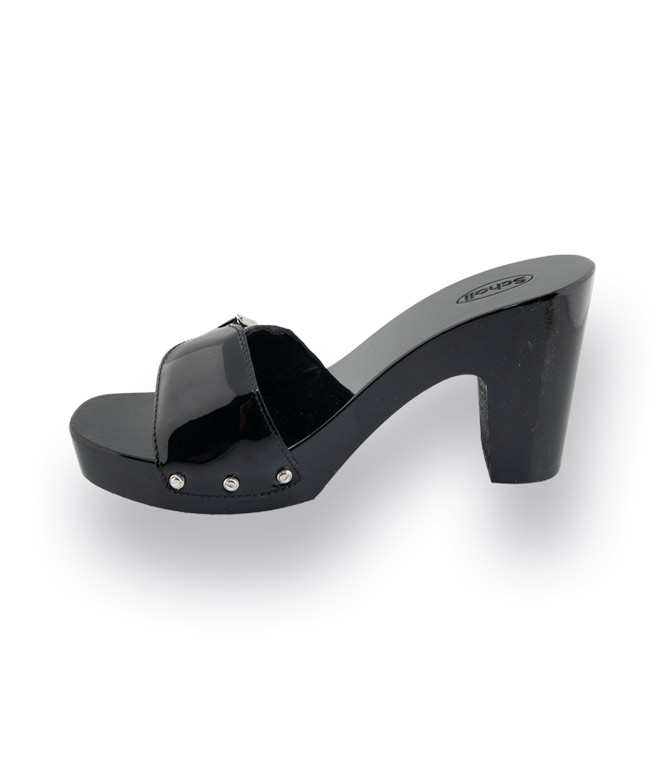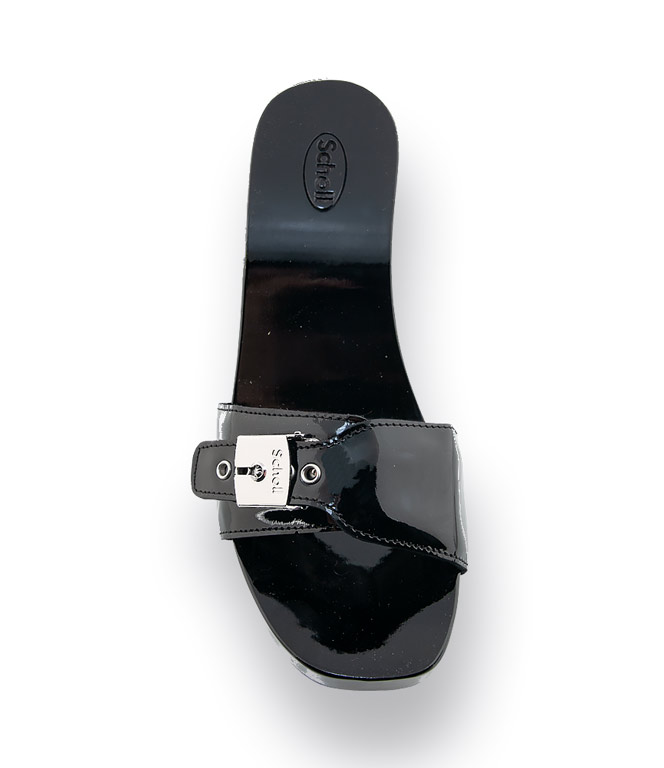 Scholl Pantolette Holzclogs Modell Pescura in schwarz Lackleder