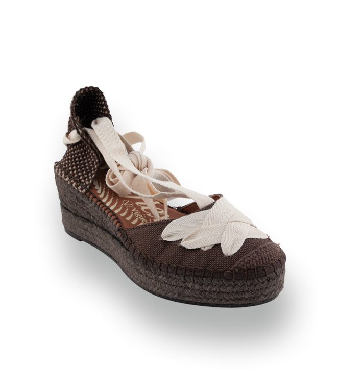 Viguera -Keilespadrilles in brauner Leinenoptik mit hellen Bändern