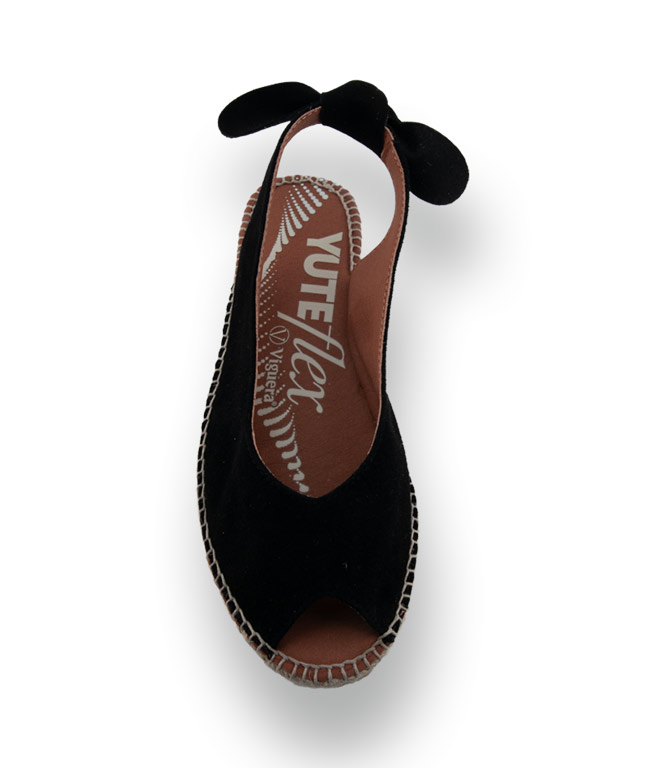 Diese Sandale von Viguera besticht durch ihr Veloursleder in tiefem Schwarz und eine elegante Optik. Die Schleife an der Ferse setzt einen verspielten Akzent, während die YUTE FLEX-Technologie für Flexibilität sorgt. Die weich gepolsterte Lederdecksohle bietet angenehmen Tragekomfort bei jedem Schritt. Die Jute-Optik verleiht dem Schuh eine sommerliche Note. Ein modisches Highlight mit Komfort und Eleganz.