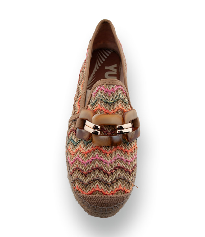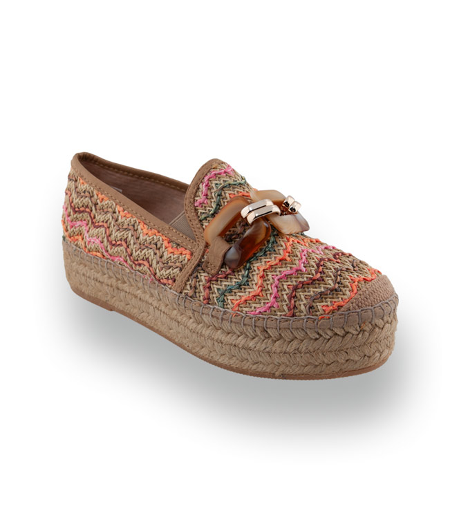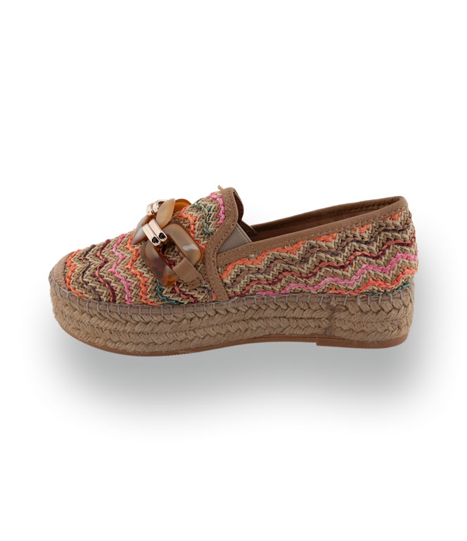 Viguera - Edle Bast-Slip-Ons mit bunten Streifen und Horn-Kette in Beige-Braun