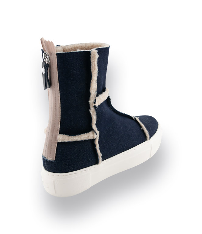 Tiefblaue Boots auf hellem Plateauboden trotzt winterlichem Wetter und bietet kuschelige Wärme. Feines Wollfutter und ein Fersenreißverschluss, der für einen angenehmen Einstieg sorgt. Winterboots sind sportiv und markant. Cord, Wolle, Lammfell, Teddy und Daune ein modischer Mix der für neue Dynamik sorgt.