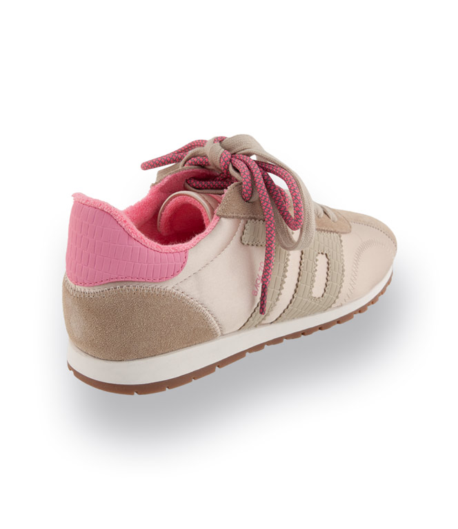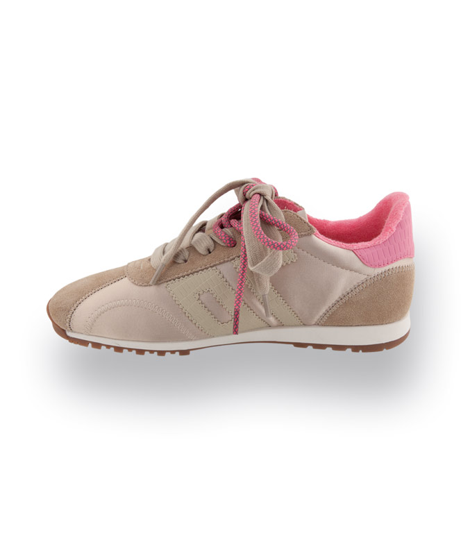 Der Back70 Damensneaker Asian Satin in Hellbeige mit Pink ist eine echte Gute-Laune-Farbkombi und macht sofort Lust auf Sommer. Velours, Glattleder und glänzender Satinstoff sorgen für eine spannende Materialmischung und einen modischen Look. Das ikonische 70-Detail an der Seite erinnert an die Turnschuhe der 70er Jahre und verleiht dem Sneaker lässigen Retro-Charme. Die weiche, sehr leichte Gummisohle und das Frottee-Textilfutter bieten hohen Tragekomfort, die herausnehmbare Innensohle macht ihn alltagstauglich.