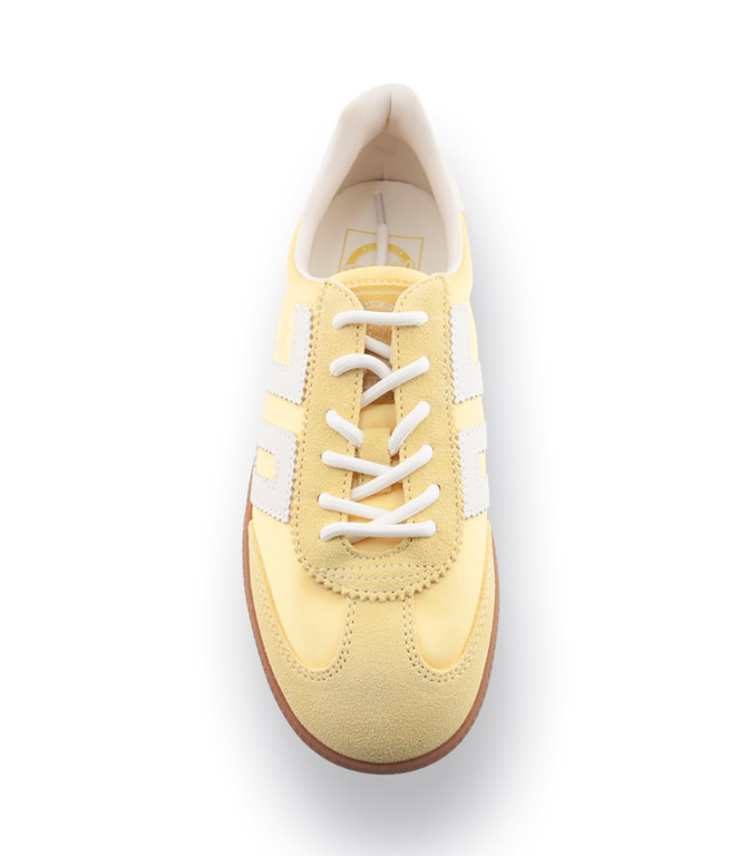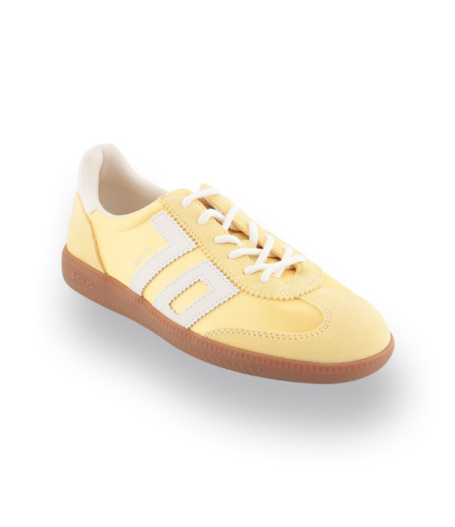 Dieser Back70 Damensneaker Ghost Satin in Bananagelb ist eine echte Gute-Laune-Farbkombi – sonnig, frisch und ideal, um im Alltag positiv aufzufallen. Die Mischung aus Velours, Glattleder und Satinstoff verleiht dem Schuh einen modernen, hochwertigen Look und spannende Strukturen. Das charakteristische „70“ an der Seite erinnert an die ikonischen Turnschuhe der 70er Jahre und unterstreicht den angesagten Retro-Style. Die weiche, sehr leichte Gummisohle und das Textilfutter sorgen für hohen Tragekomfort, die herausnehmbare Innensohle macht den Sneaker besonders praktisch.
