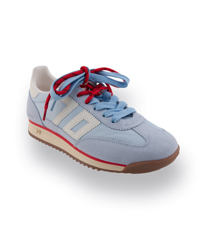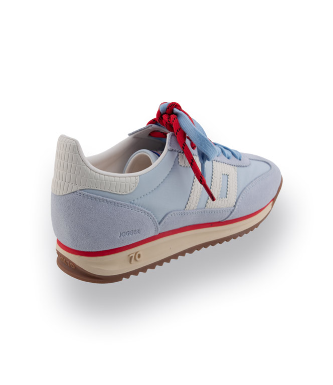 Der Back70 Jogger Sky in Hellblau mit roten Details verbindet coolen 70er-Jahre-Style mit modernem Komfort. Das Material-Mix aus Velours, Leder und Textil wirkt hochwertig und wird durch die weiße „70“-Aufschrift sportlich akzentuiert. Rote Akzente – wie der Streifen im Keil und ein zusätzliches rotes Schnürband – setzen modische Kontraste und machen den Sneaker zum Blickfang. Die flexible, leichte Gummisohle sorgt für ein angenehmes Laufgefühl, während das atmungsaktive Textilfutter und die herausnehmbare Innensohle extra Komfort und individuelle Anpassung bieten. Ein idealer Sneaker für Alltag und Freizeit mit lässigem Retro-Charme.