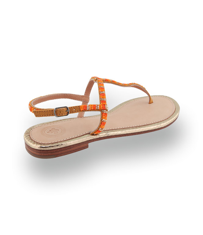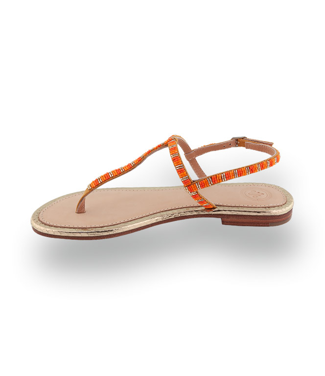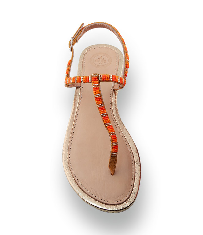 Diese exquisite Dianette von BaliBali besticht durch ihr geprägtes Goldleder, das durch die orangefarbenen Perlenstickereien modisch veredelt wird. Die handwerkliche Präzision sorgt für eine optimale Passform und macht pure Lust auf festliche Abende am Strand. Dank der hauchzarten Riemchen genießen Sie ein unvergleichlich freies Tragegefühl bei jedem Schritt.