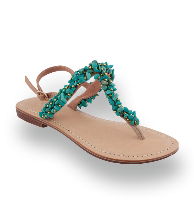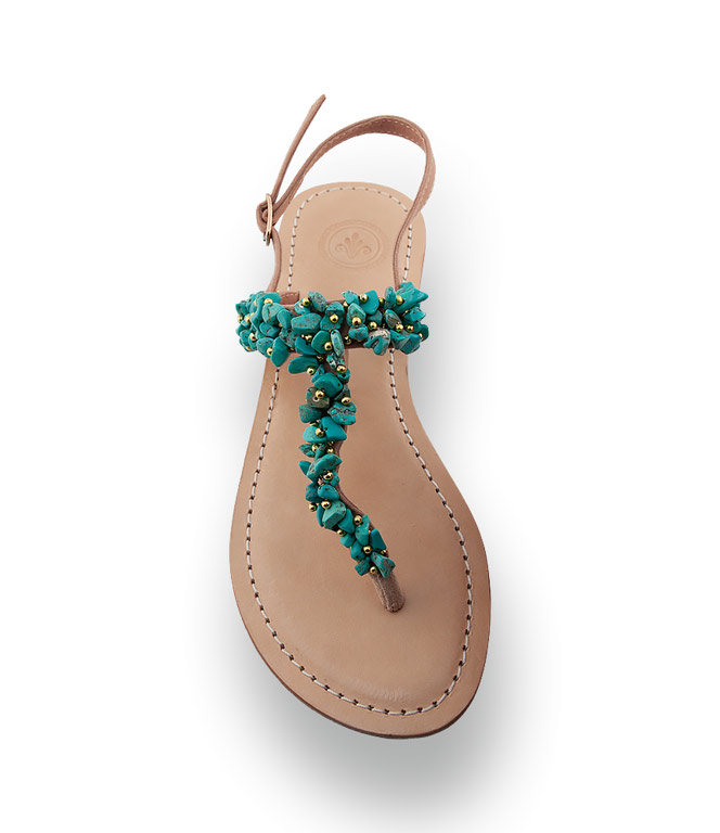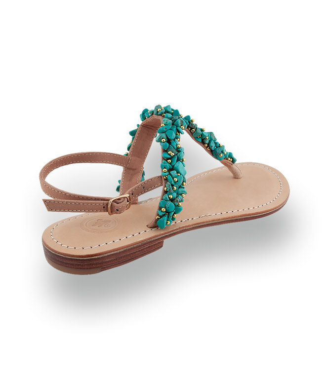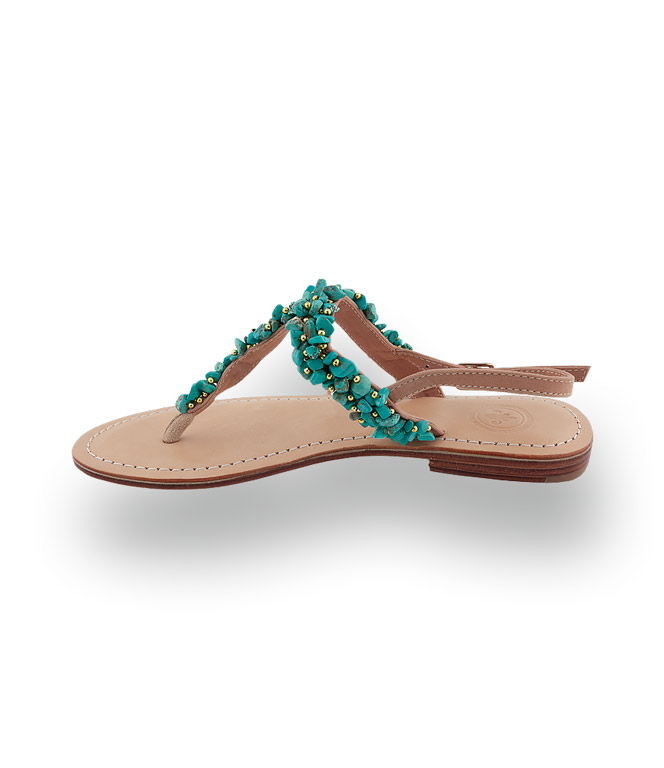 - Farbe: Frisches Türkis mit goldglänzenden Akzenten und beigen Riemen