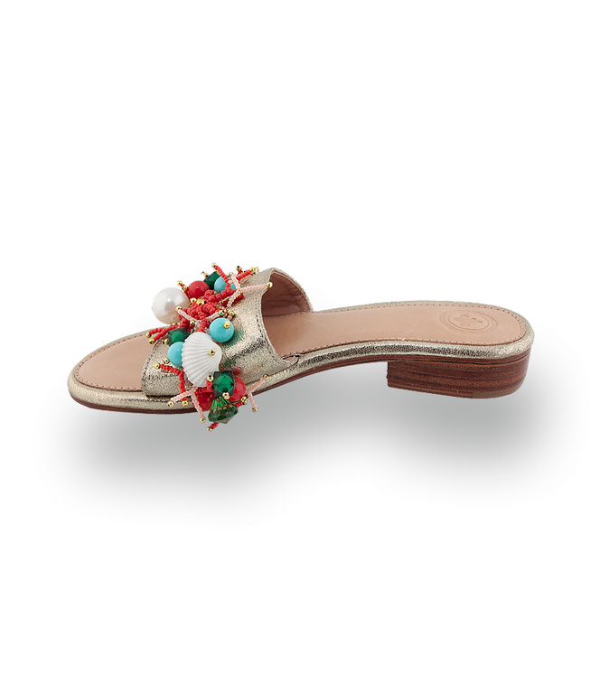 BaliBali Damen-Pantolette in Gold mit maritimem Schmuck
