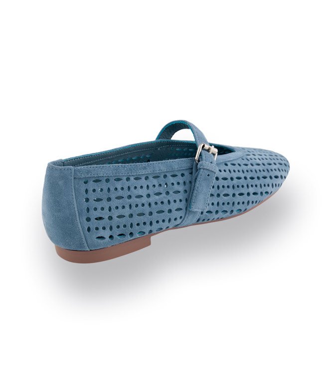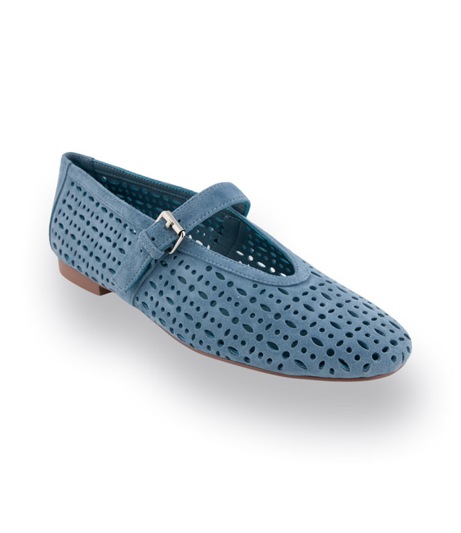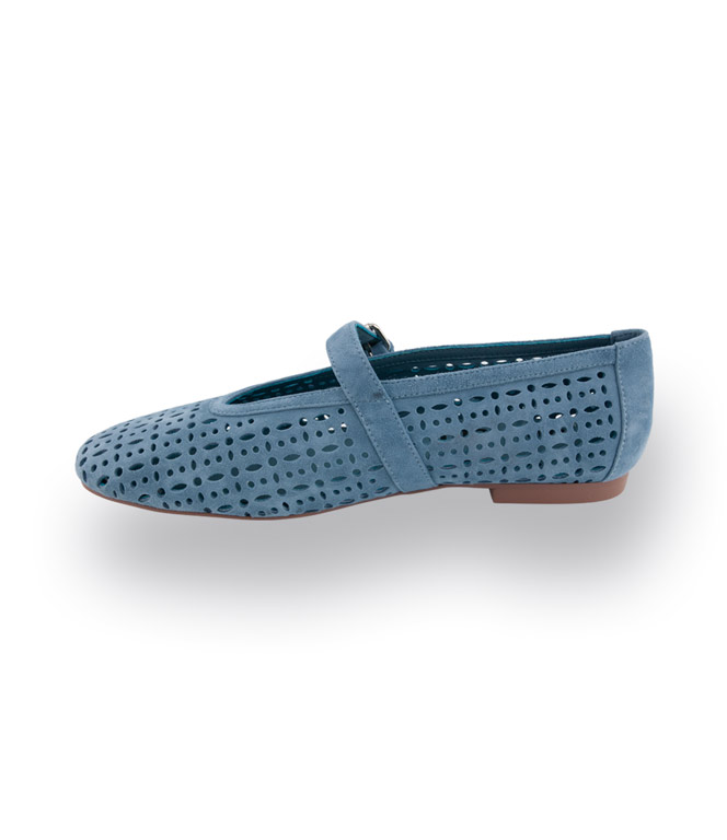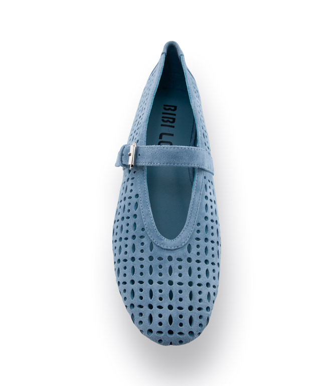 Bibi Lou Ballerina in hellblau velours mit Cutouts und Spange