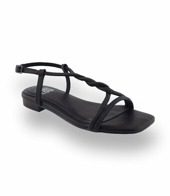 Funkelnde schwarze Strassteinchen glitzern auf Stoff um die Wette. Die verschlungenen Riemchen sind perfekt angeordnet und sitzen wie angegossen. Kunststofflaufsohle und der Absatz sorgen auch an heißen Tagen für einen hohen Tragekomfort. Die freche Sandale lässt sich wunderbar kombinieren und veredelt ihre Outfits im Nu.