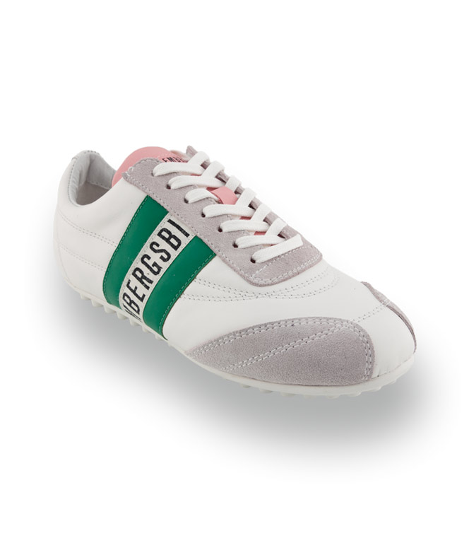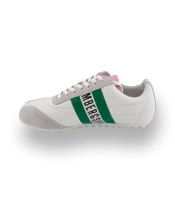Bikkembergs - Kultiger Nappaleder-Sneaker mit Noppensohle in Weiß-Grün-Rosa