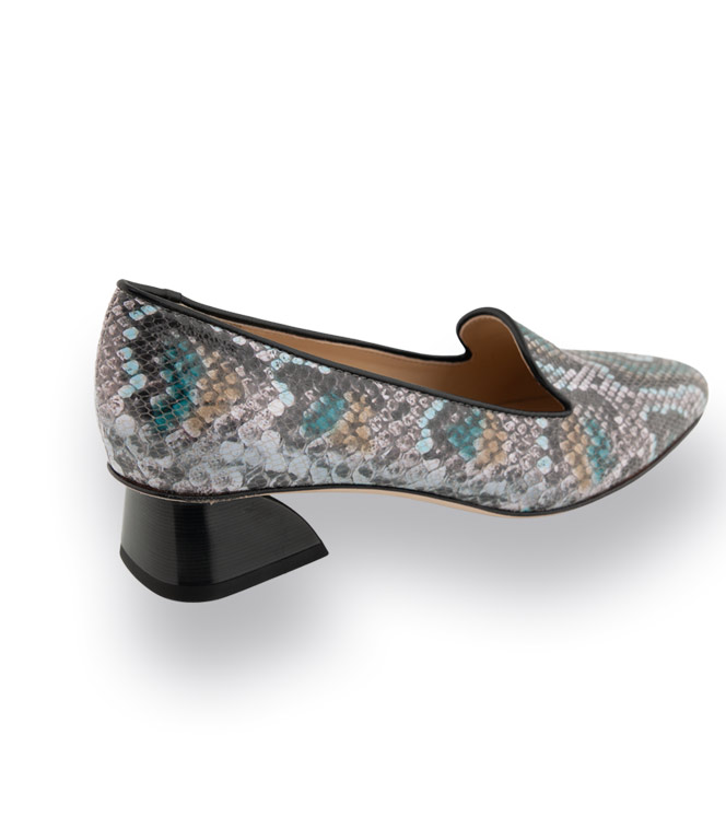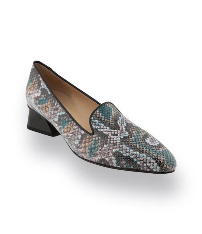 Der Brunate Hochfrontpumps in Blau/Grau verbindet edle Schlangenprägung mit einem modernen, femininen Schnitt. Die charakteristische Lasche und das schwarze Paspol geben dem Schuh eine elegante Linie und sorgen zugleich für sicheren Halt. Das hochwertige Glattleder mit Schlangenprint in Blau, Grau, Petrol und Weiß macht diesen Pumps zum stilvollen Blickfang. Innen sorgt weiches Lederfutter für angenehmen Tragekomfort, Ledersohle mit Gummieinsatz und der ca. 3,5 cm hohe, eckige Absatz bieten Stabilität und Bequemlichkeit im Alltag wie zu besonderen Anlässen.