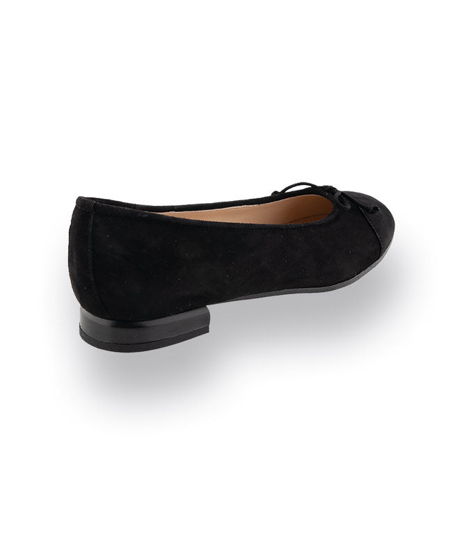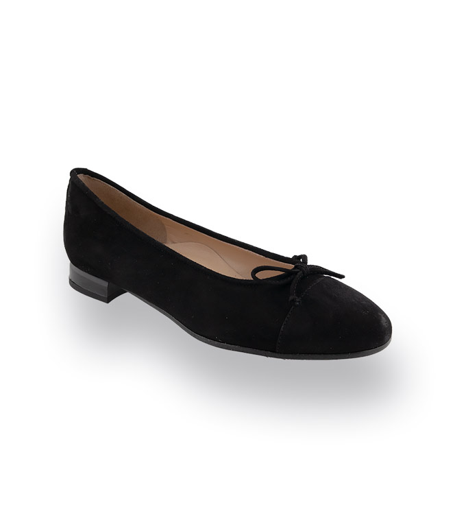 Schwarzes Velourleder, die Kappe und das Schleifchen machen dieses Modell zum Klassiker. Der runde Ballerina sitzt wie angegossen. Lederfutter und Lederlaufsohle begünstigen den Tragekomfort. Brunate ist bekannt für die Herstellung hochwertiger Schuhe mit einem besonderen Augenmerk auf Komfort und Qualität.
