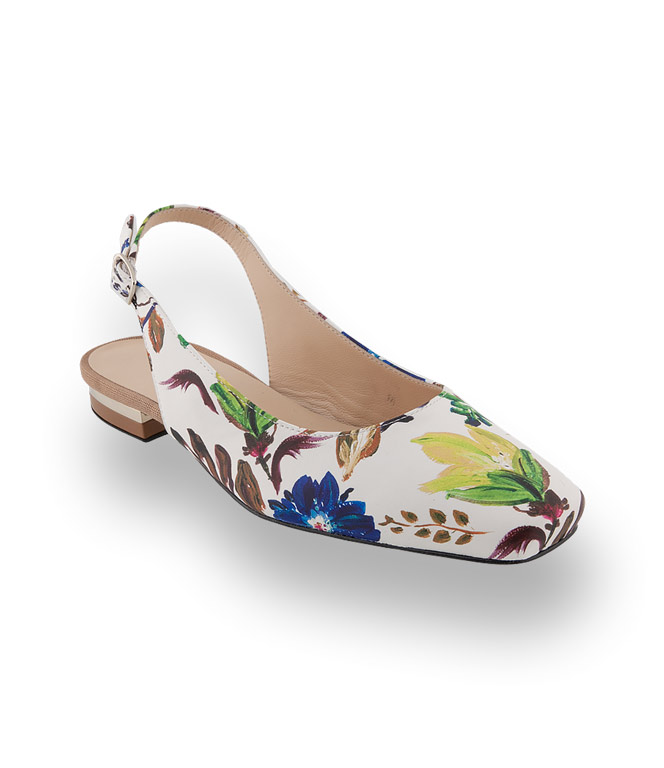 Der ausgefallene Slingback von Brunate zeigt sich in voller Blütenpracht.