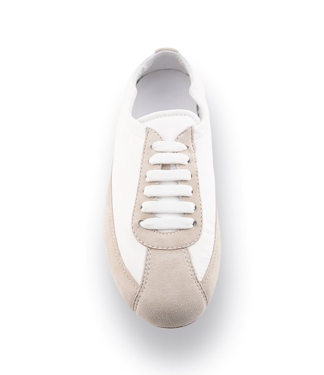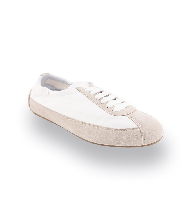 Der Candice Cooper Dandy SF in Beige und Weiß ist ein leichter Barfußschuh, der ein besonders natürliches Laufgefühl vermittelt. Feinstes Velours in Kombination mit Nylon sorgt für einen modernen Look und ein angenehm weiches Tragegefühl. Die sehr flexible, flache Gummisohle ermöglicht direkten Bodenkontakt und unterstützt die natürliche Abrollbewegung des Fußes. Innen ist der Schuh teils ledergefüttert, teils ungefüttert und schmiegt sich sanft an den Fuß an. Die herausnehmbare Innensohle eignet sich auch für lose Einlagen, während der Gummizug an der Ferse für einen sicheren Sitz und extra Komfort sorgt – ideal für alle, die Leichtigkeit und Bewegungsfreiheit lieben.