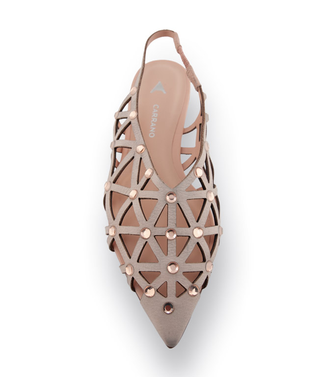 Ein süßer Hingucker aus Brasilien: Dieser nudefarbene Carrano Sling mit funkelnden Strasssteinen und raffinierten Cut-outs ist perfekt für Partys und Urlaub. Die zarte Nude-Farbe lässt sich vielseitig kombinieren und schmeichelt dem Fuß optisch. Das weiche Veloursleder mit Strass besetzt, sorgt für eine feminine, edle Ausstrahlung, während die flache Sohle mit ca. 1 cm Absatzhöhe für angenehmen Tragekomfort sorgt.