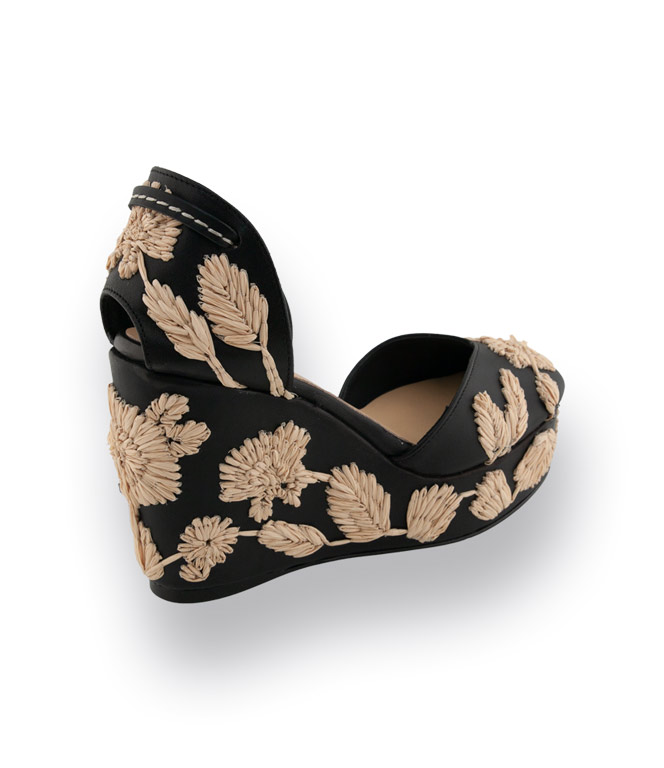 - Tolles modisches Detail ist das Plateau, der Keil und die wunderschöne Stickerei aus Bast, Handarbeit