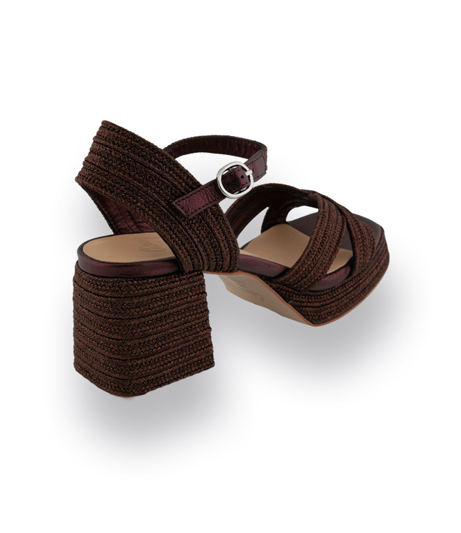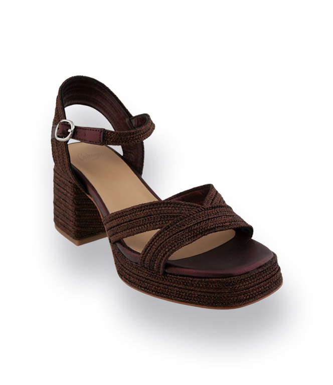 Castaner, der spanische Spezialist für Espadrilles und außergewöhnliche Schuhe, präsentiert diese edle Sandale in Dunkelbraun mit markantem Plateau. Das hochwertige Textilmaterial mit feinem Lurexglanz verleiht dem Schuh eine zarte, schimmernde Note und macht ihn zum besonderen Blickfang. Kreuzbandage und das Riemchen sorgen für sicheren Halt und setzen den Knöchel feminin in Szene. Im Inneren ist die Sandale vollständig mit weichem Leder gefüttert und bietet in Verbindung mit dem ca. 6 cm hohen Absatz und dem 2 cm Plateau einen angenehm bequemen Tragekomfort.