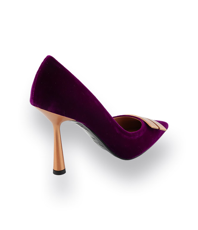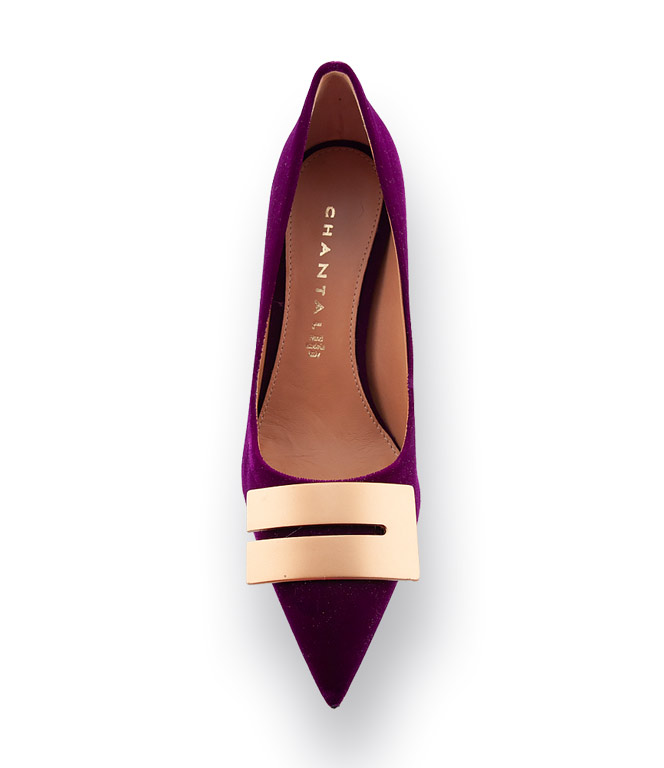 Chantal 1962 Pumps viola Samt mit Brosche