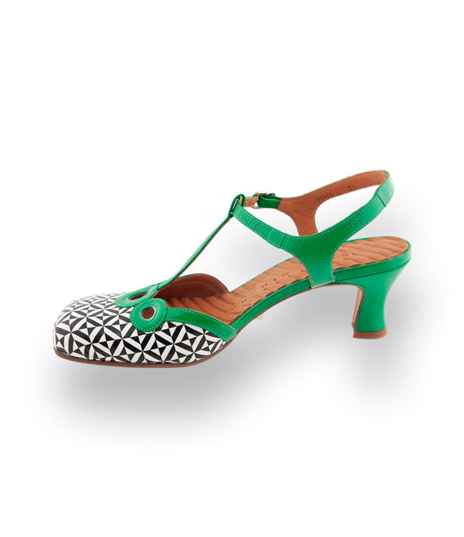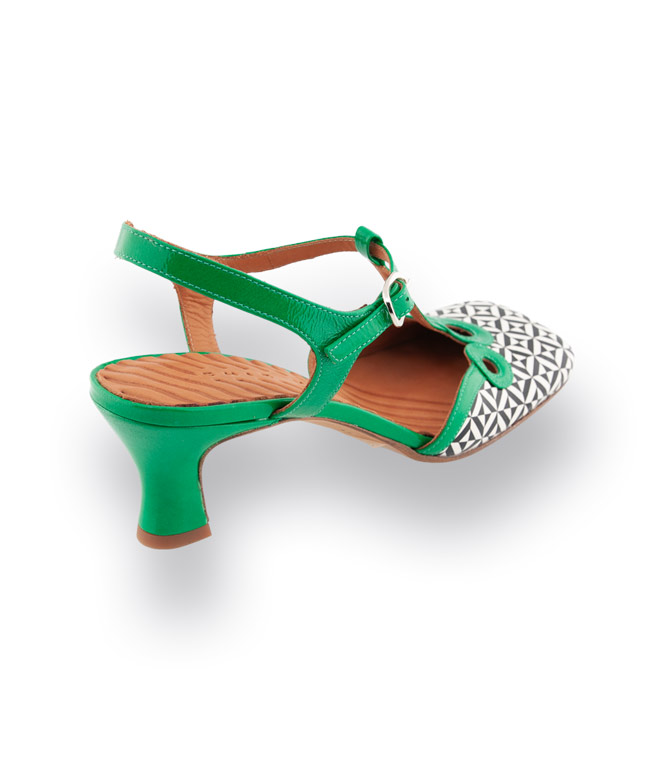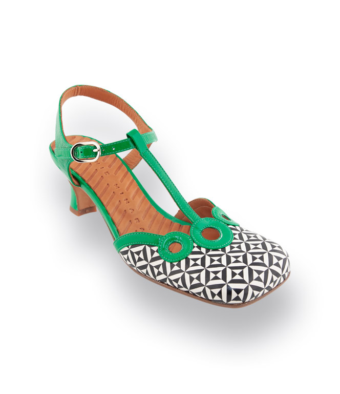 Chie Mihara Slingpumps in schwarz weiß mit grün und Stegspange