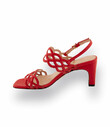 Die Evaluna Sandale in leuchtendem Rot besticht durch ihr elegantes Design und die modischen Cutouts, die nicht nur ein optisches Highlight setzen, sondern auch für eine ausgezeichnete Belüftung sorgen. Mit einer Absatzhöhe von etwa 6 cm sorgt die Sandale für eine elegante Silhouette, während die Ledersohle Langlebigkeit gewährleistet.