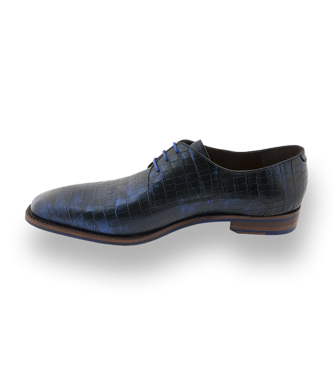 Floris van Bommel Herrenschnürer in blau metallic Krokoprägung