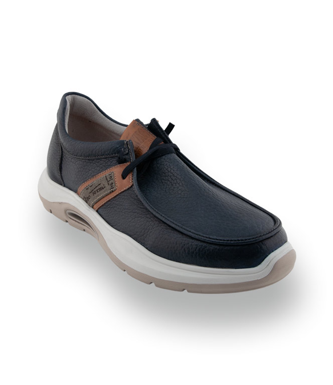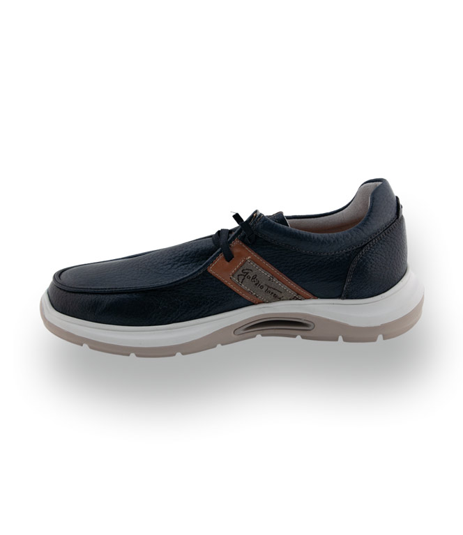 Dieser exquisite Schnürer von Galizio Torresi besticht durch sein hochwertiges genarbtes Leder in tiefem Dunkelblau, das durch warme braune Akzente sportlich veredelt wird. Das modische Design mit elastischem Gummiband erlaubt ein müheloses Schlüpfen und bietet perfekten Halt im Alltag. Dank der superleichten Sohle und der weichen Polsterung genießen Sie ein unvergleichlich freies Tragegefühl bei jedem Schritt. Die handwerkliche Finesse und das dezente Logo seitlich garantieren einen stilsicheren Auftritt.