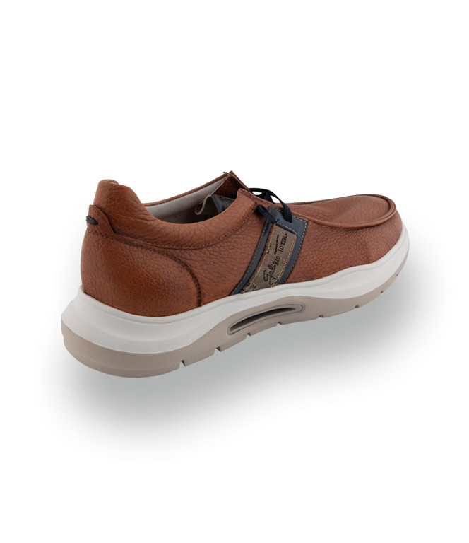 Dieser exquisite Schnürer von Galizio Torresi besticht durch sein hochwertiges genarbtes Leder in warmem Cognac, das durch blaue Akzente sportlich veredelt wird. Das modische Design mit elastischem Gummiband erlaubt ein müheloses Schlüpfen und bietet perfekten Halt. Dank der superleichten Sohle und der weichen Polsterung genießen Sie ein unvergleichlich freies Tragegefühl bei jedem Schritt. Die handwerkliche Finesse und das dezente Logo seitlich garantieren einen stilsicheren Auftritt.