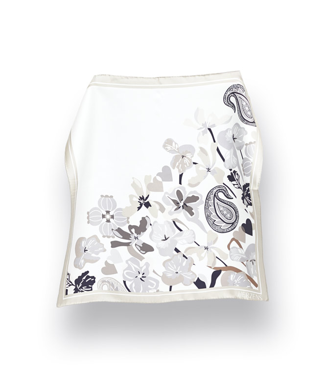 Das Seidentuch von Herzens überzeugt mit einem dezenten Print in zarten Beige-, Schwarz- und Weißtönen auf offwhitefarbener Basis. Feine Blumen, kleine Herzen und grafische Details wirken elegant, ohne aufdringlich zu sein. Der schmale, beige Rand rahmt das Dessin harmonisch ein und macht das Tuch zu einem besonders neutralen Kombipartner – passend zu vielen Farben und Looks. Aus 100 % Seide gefertigt, fühlt es sich angenehm glatt, leicht und luxuriös auf der Haut an. Mit seinen Maßen von ca. 50 x 50 cm lässt es sich vielseitig tragen: lässig um den Hals, ins Haar gebunden oder als edles Detail an der Tasche.