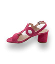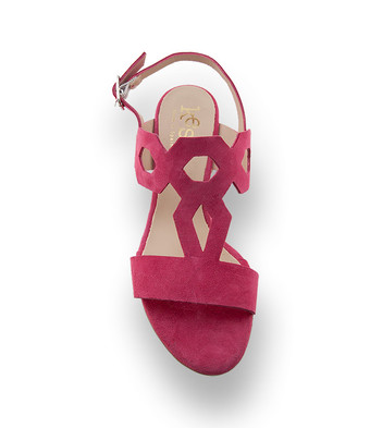 Weiches pinkfarbenes Veloursleder mit angesagten Cut-outs bestimmen das feminine Gesamtbild. Die freche Riemchenlösung sitzt wie angegossen. Mit einer zierlichen Schließe kann der Fersenriemen individuell angepasst werden. Der 5 cm hohe Säulenabsatz ist ein weiteres Highlight. Weiches Lederfutter und die flexible Gummilaufsohle garantieren einen hohen Tragekomfort.