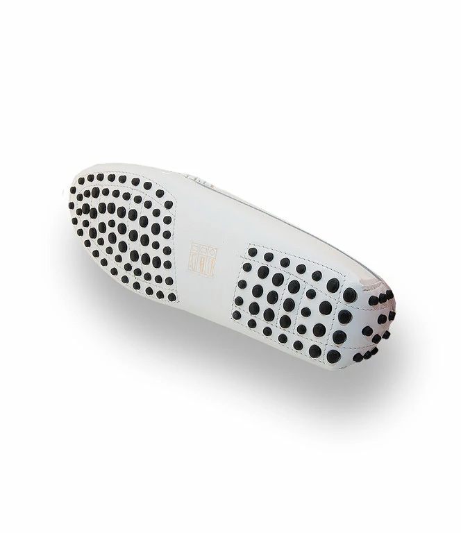 Ein glanzvoller Begleiter für stilbewusste Alltagstage voller Leichtigkeit! Dieser exquisite Mokassin besticht durch sein weißes Lackleder, das durch die markante Noppensohle modisch veredelt wird. Die handwerkliche Präzision sorgt für eine optimale Passform und macht pure Lust auf entspannte Reisen oder ausgedehnte Stadtbummel. Dank der integrierten Gelenkstütze genießen Sie ein unvergleichlich freies Tragegefühl bei jedem Schritt. Das zeitlose Design garantiert einen stilsicheren Auftritt und vereint klassische Eleganz mit maximalem Komfort meisterhaft.