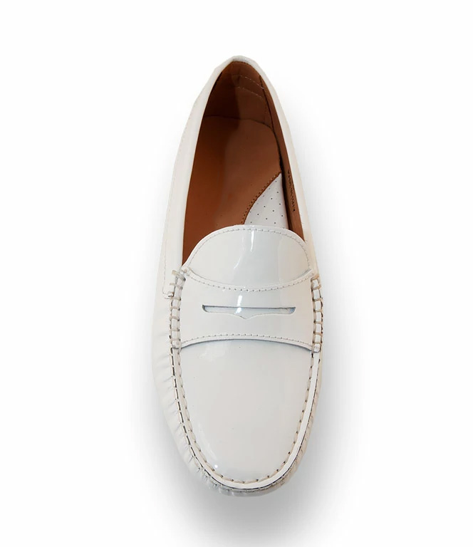 Klassischer Damen-Mokassin aus weißem Lackleder