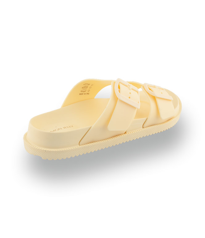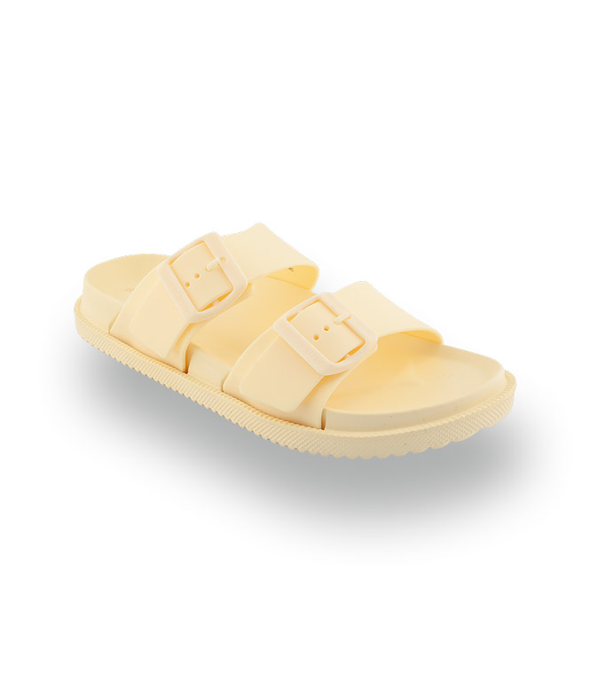 Diese exquisite Pantolette von Lemon Jelly besticht durch ihr hochwertiges Material in zartem Gelb, das wie ein sanfter Sonnenstrahl wirkt. Das modische Design mit zwei praktischen Schnallen erlaubt eine ideale Anpassung bei einem ausgiebigen Strandspaziergang. Dank der anatomisch geformten Sohle und der beeindruckenden Leichtigkeit genießen Sie ein unvergleichlich freies Tragegefühl am Meer. Die nachhaltige Produktion und die veganen Komponenten garantieren höchsten Komfort bei moderner Ethik.