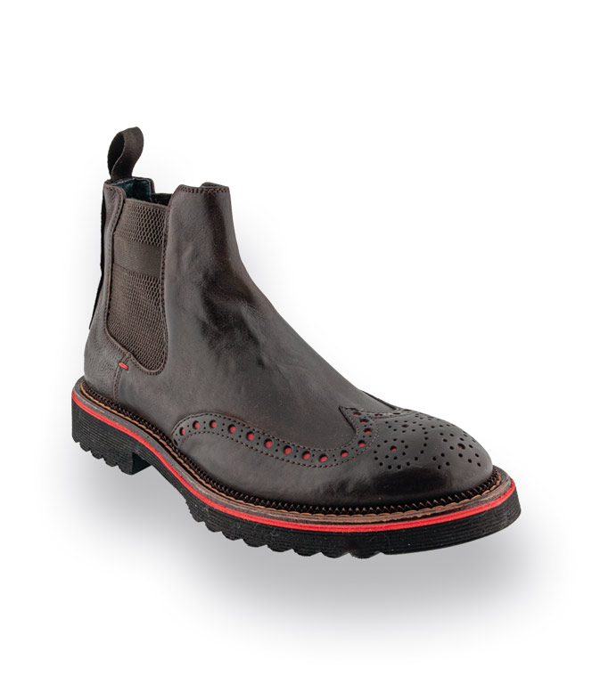 Klassischer Chelseaboots von Lorenzi in braun mit roten Details