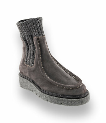 Eine modische Variante in grau sorgt für individuelle Styles. Hochwertige Materialien, Lederfutter, Wulstnaht und Strick sitzt wie ein Socken. Starke Sohlen stehen im Fokus und die Kombination mit Strick ist umwerfend. Ein harmonisches Spiel aus maskulin und feminin.