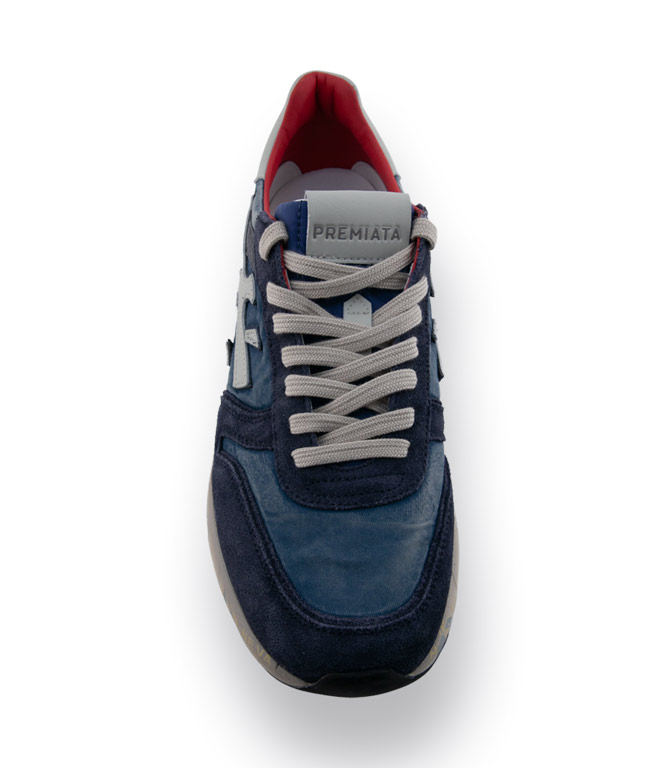Premiata Herrensneaker Modell Mick blau mit grau und mit hellen Schuhband